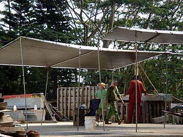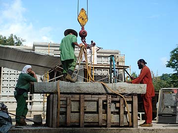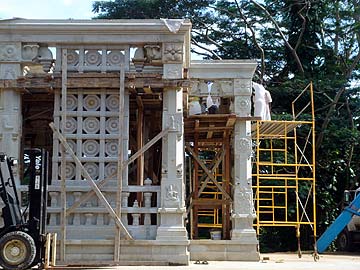 Meanwhile at home the weather has cleared for our Iraivan team to raise up more beams to the roof.