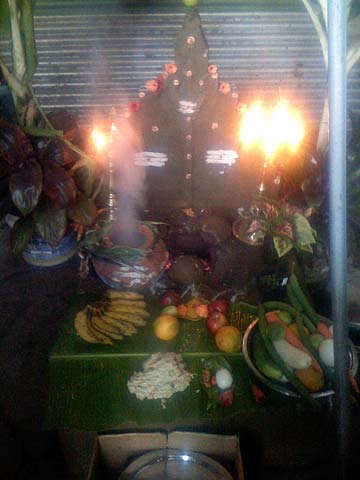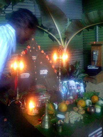 When it is done it is put out onto the banana leaf and arati is done.