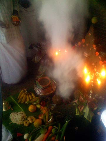 Today was the auspicious day of Thai Pongal when the sun moves into Capricorn beginning the month of Thai or Makara in Sanskrit. It is called as Makara Sankranti in other areas of India ("Makar Sankrant" in Hindi). In Tamil Nadu it is an agricultural festival marked by the boiling of a special clay pot of rice and milk (hence the term "pongal") which serves as an augury for the coming year.