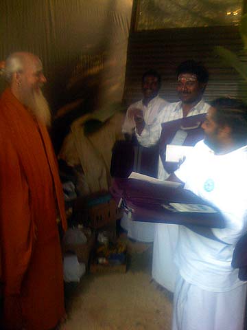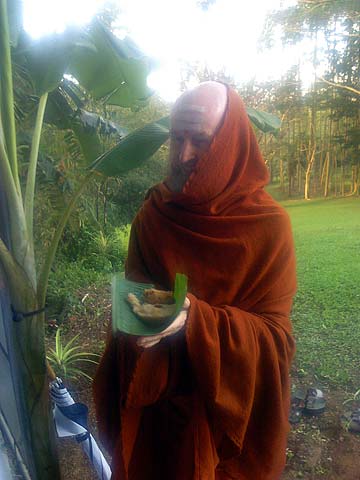 The sun rises and prasadam is distributed to all.
