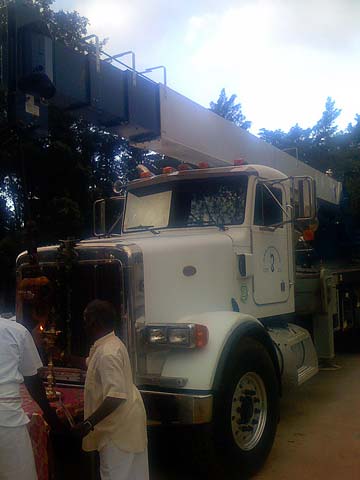 The arati is taken all around the crane.