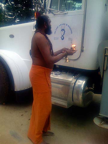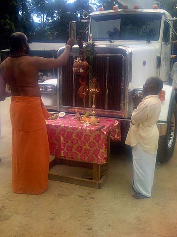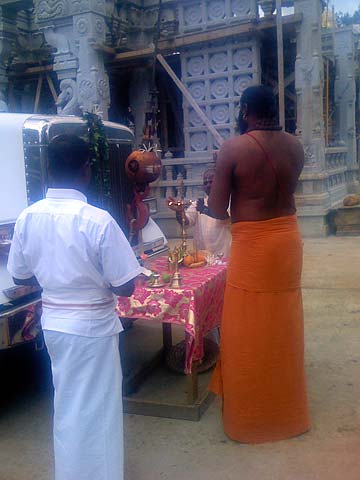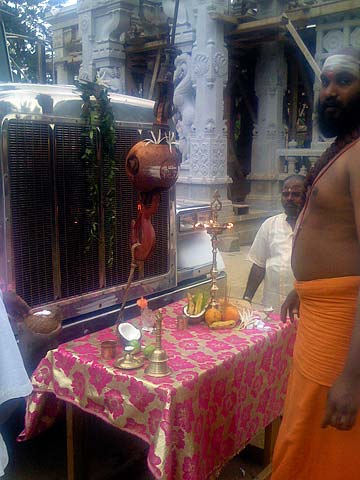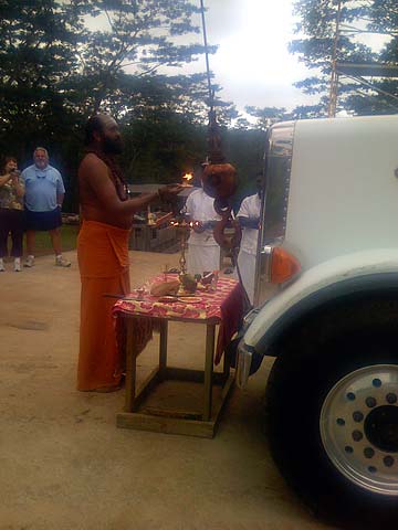 After the morning pongal puja an extra special vehicle blessing was performed by Yoginathaswami.