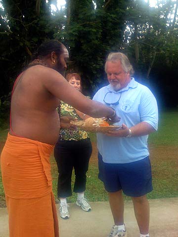 Larry's friends enjoy some Hindu Prasadam...