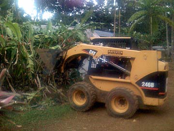 our Siddhidata Kulam has been living out of an office trailer for many years. Plans have been in the works to build a new building and slow by slow, the team is working their way toward that goal. They recently cleared some areas for the future structure and now the first thing to do is move the old office... a Big Job!