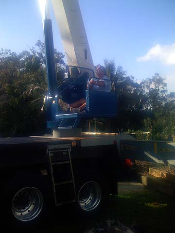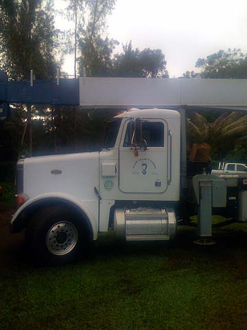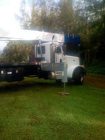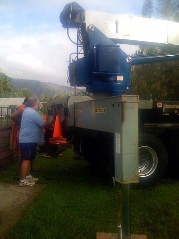First he sets down the stabilizers which literally lift the whole truck off the ground.