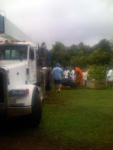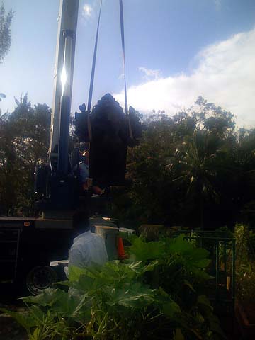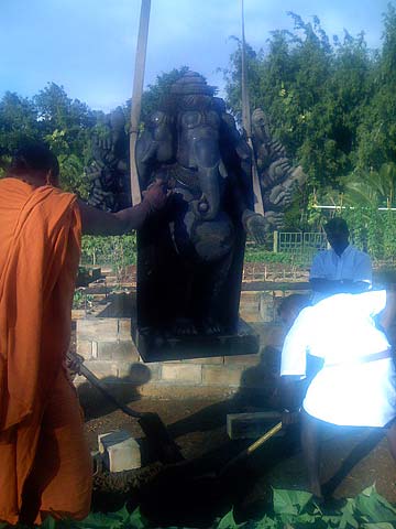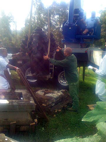 The hoisting of Lord Ganesha was to be the first act of Larry's new crane.