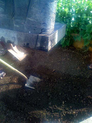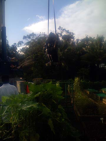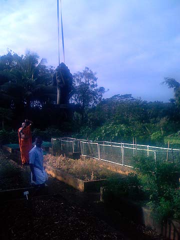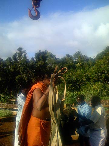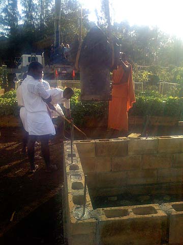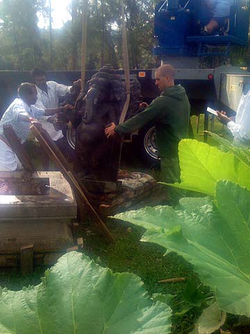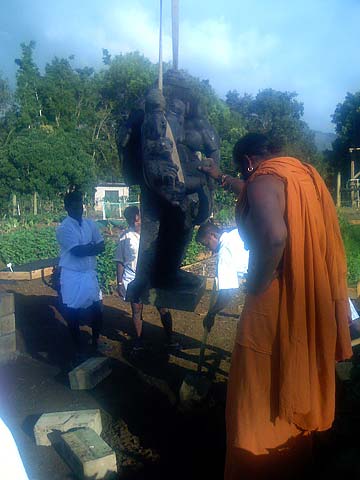 For now Ganesha will sit outside the center until his peedam is finished. But now he is watching over all the plants and the monks.