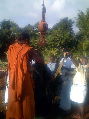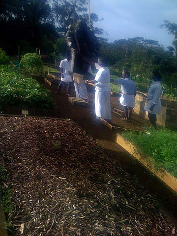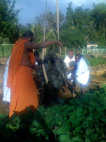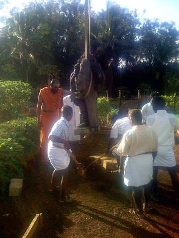 We pick up the thread on events from our Thai Pusam day with the third segment of morning events. Long, long ago, Lord Ganesha was carved in Bangalore for the monks' garden which we call "Annapurna Garden" . Annapurna is a famous name of the Goddess "She Who is the Fullness of Food" and signifies the Divine source of our physical lives.