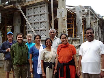 Visitors today included Vija and Prabha Dayal and her sister all from BC, Canada. They had heard about the temple from friends. Beside them are two physicians from Iowa, Dr. Rohini Reganti and her husband, Dr. Reddy Reganti who also arrived on the recommendation of friends. In blue are Estelle and Mike Gannett. Mike served with the Peace Corp in Jaipur Rajasthan in the 60's and later manufactured and exported handicrafts from Channapatna near Bangalore until the 1980's.