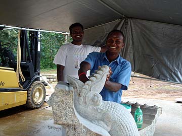 Six of these crocodiles will be placed on the temple roof (three on each side). Their purpose is to channel rainwater from the rooftop which will drop into reflecting-pool granite containers below.