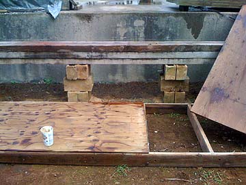 We are utilizing the temple's foundation slab as if they were the beams on the temple. A heavy duty bench was build by the Siddhidata Kulam which will serve as the tempory stand for the Kodungai stones. Another plywood platform also build so that the silpis can work comfortably.