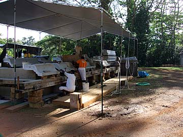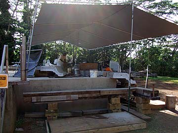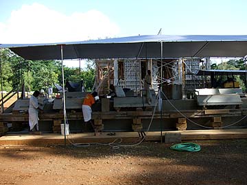 A quick tent was assembled and all the needed Kodungai stones was moved with the forklift in position for the silpis work mark and carve.