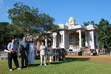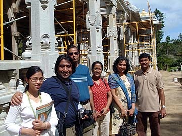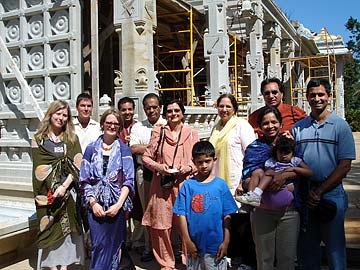 A large group of visitors arrived yesterday. Far right is Girish Bhat, his wife Srigouri and their two children Nilabh (8 yrs) and Anusha (2 yrs) from Calif. Next to them is Bahadas and Reshan from Canada. Also Drs. Santoish and Rajinder Bahal from Wisconsin. Dr. Raghu's son, Gopal and his friend Darin Bahl from Connecticut and lastly two young ladies, Kristen Packard and Brande Sager from Arizona who are ardent students of Gurudeva's trilogy, "Dancing with Siva," "Living with Siva" and "Merging with Siva."