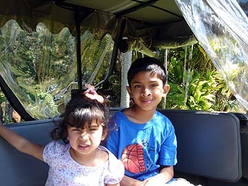 Nilabh and Anusha wide awake and ready to go on the people mover.