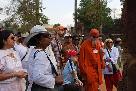 Bodhinatha leads the group into the temple premises.