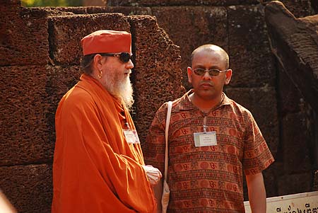 Shaha from Toronto enjoys a conversation with Bodhinatha during the tour.