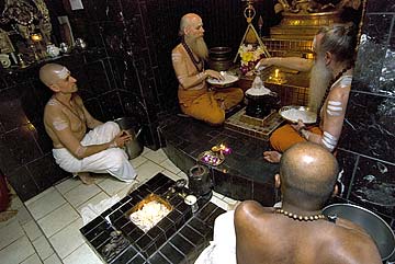 Monks prepare for the powerful Siva worship...
