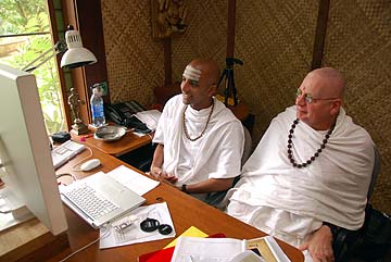 Sadhaka Dandapani is responsible for preparation of the first draft of the monthly Kauai Aadheenam newsletter. Sadhaka Haranandinatha, who manages the fund-raising for Iraivan, keeps an eye on the content because it goes out to all our temples supporters.