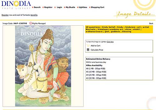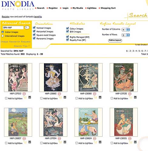 Last May when Palaniswami and Yogi Jivanandanatha were in Mumbai, they met with Dinodia's founder, Jagdish Agarwal, and worked out the plan to add this special South Indian style art to his worldclass collection. From their site (http://www.dinodia.com), you put in the search field a special code (DPA-HAP) and up comes the thumbnails as shown here.