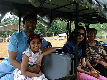 Swamy Nagubadi with little Navya (who was absolutely delighted to pet the temple cats); her mother Sandhya, and grandmother on the people-mover.