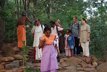 We encounter a sadhu on the hill and Innersearchers approach him for blessings.