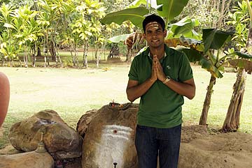 The ashram is run by Sri Jeyandrapuriswami who is based in Bangalore. Swami was kind enough to arrange for the group to have lunch at his ashram in Tiruvannamalai. One of his resident monks greet us.