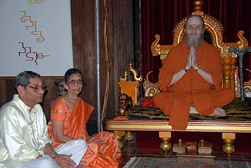 On the left is Radhakrishnamurthy and Sulochana Bhandaru from the east coast of US. They last visited about eleven years ago and fondly recalled meeting Gurudeva at that time and walking on the San Marga path.