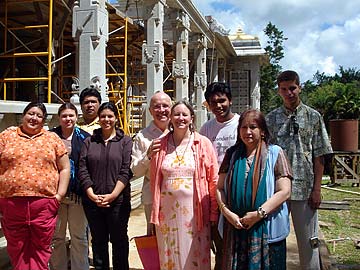 After visiting the Iraivan Temple, Aunty Punna and Olana Flores brought out their ukulales and our visiting Hula Halau began a beautiful Hawaiian dance in front of the silpis. This unexpected moment caught them all by surprise as they gathered to watch the dancers from their roof-top position, applauding and graciously thanking them for this unexpected break in an otherwise routine morning's work.