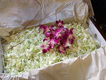 These flowers were sponsored by Selvanathan Jothiswarar and family from Ulu Behrang, Perak, Malaysia. This is an on-going sponsorship for garlands for the temple deities in the memory of his late wife Tirumati Rani Jothiswarar. Mikka Nandri! Thank you very much!