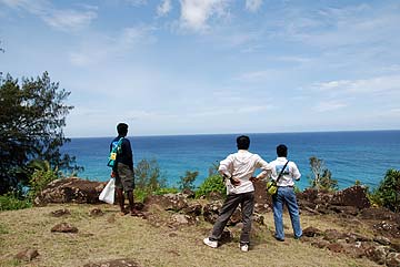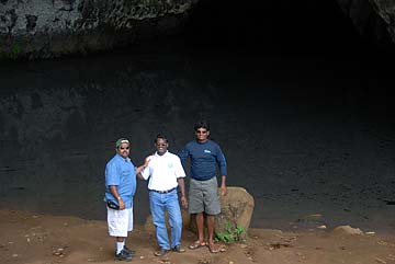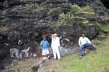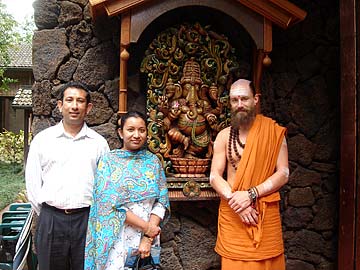 Here are Ariaratnama and Uma outside the Kadavul Siva Temple with Saravananathaswami following the morning puja.