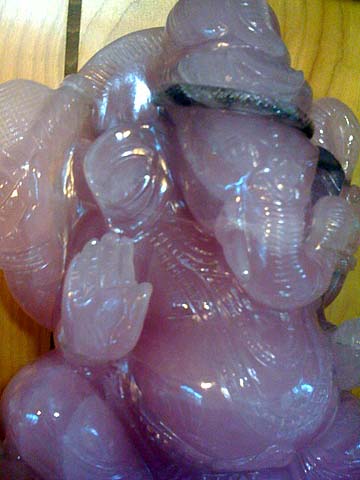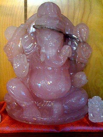 Here we have a Rose Quartz Ganesha from Anil Gupta in Haridwar India. This Ganesha is 10 inches tall and 6 inches wide and weighs about 14 pounds. Absolutely stunning!