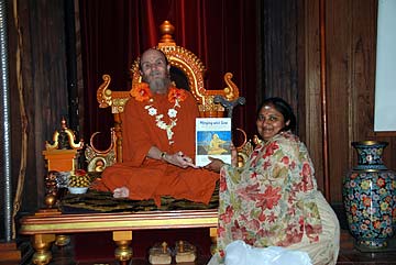 Nanda Ambore from Midland, Texas is here on pilgrimage and has been attending the 9am Siva puja daily. Here she has Bodhinatha sign her copy of the Master Course trilogy.