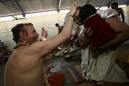 Ravi receives a vibhuthi blessing from Bodhinatha after the ceremony. Congratulations!