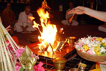 On the left is Dr. Bhartendu Srivastava and his wife Uma from Toronto, Canada. With a week-long Pediatrician's Conference taking place on Oahu, we have had several physicians visiting the temple these past few days.