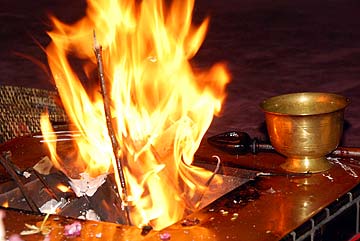 Chinna Chinnakaruppan, an Engineer, and his wife, Dr. Nachu Chinnakaruppan, a pediatrician, arrived for the morning puja. Originally from Kothamangalam, S. India, they now reside in New Jersey with their two young children, Abwani (age 4) and Arun (age 2).