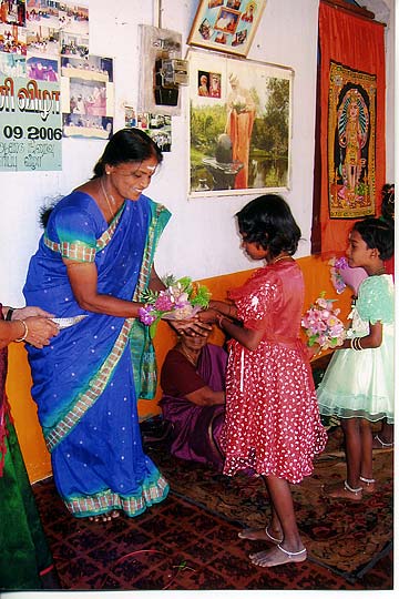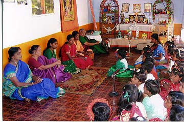 They performed the pujas and sang bhajans each evening. On the last day, known as Vijayadasami, the students enjoyed dancing and singing, and gave speeches on stage.