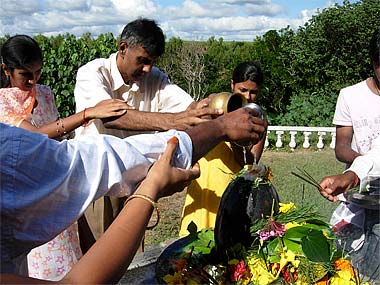 The May 2008 Ganesha Homa marked the winter season shyly coming into the island of Mauritius. A splendid weather on that day and the Spiritual Park was filled up with a large crowd of devotees. Lord Ganesha is covered all over with beautiful flowers.