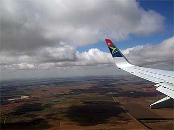 Final approach to Johannesburg's Tambo Airport after leaving Durban. You can see that Johanessburg and Pretoria are located on a vast plain.