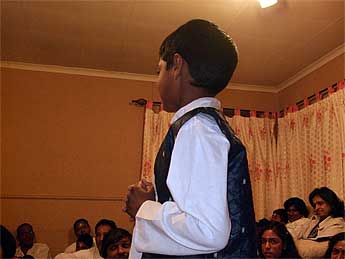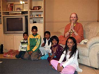 After the bhajan the children get a chance to participate by answering questions from Dancing with Siva as Bodhinatha listens.
