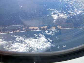 Our last glimpse of the African mainland (and a seemingly endless beach) as the plane leaves the Mozambique coastline near Xai-Xai and heads for Mauritius.
