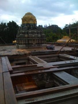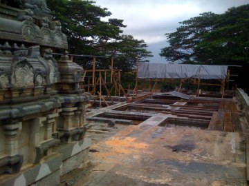 Work is being done at the roof level, so you can now stand on the roof next to the vimanam tower.
