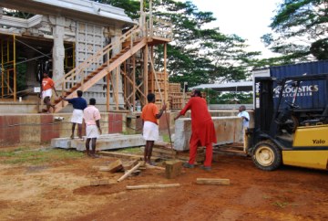 Today we take a short tour of the Iraivan Temple, to see the two containers that arrived from India with floor stones in rose granite.