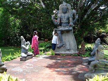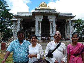 Members of the Sendan family pose in front of Lord Ganesha's shrine outside the Kadavul Siva Temple following the puja.