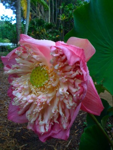 This 1000-petaled lotus is blooming at the monastery for the first time, an amazing creation covered by eager bees in the early hours of the day.