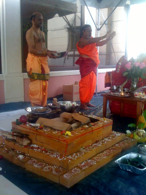 One of the priests is Ganesha Gurukkal helping out for the four days of ceremonies. He is now at Siva Vishnu Temple in Wash DC. Previously at Rose Hill Temple in Mauritius. He reminded me of my last visit to the Rose Hill temple and that he served us dinner in his home. Hinduism is certainly developing a global priesthood!