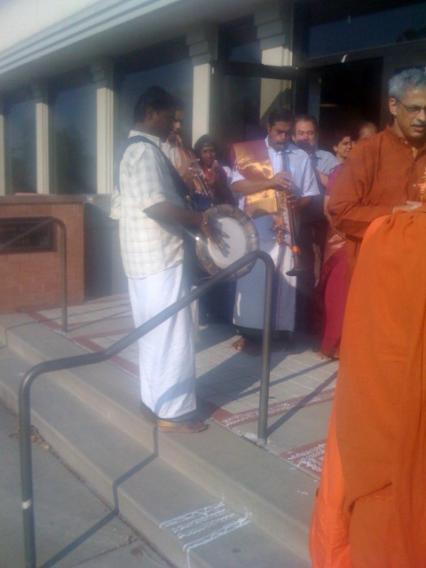 As we write, Bodhinatha and Sadhaka Nilakantha are flying over the Pacific, and will arrive later this evening on Kauai. Sadhaka sends us a few iPhone shots from the arrival at the Baltimore temple yesterday. And Bodhinatha has some interesting observations.