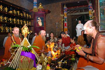 A very auspicious day at Kauai Aadheenam to begin our new phase. This morning Chidambaram Sendan and Shaila Pushpa Sendan both received the Vidyarambha samskara, the official beginning of their education.