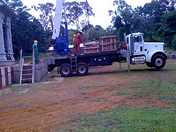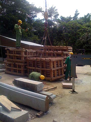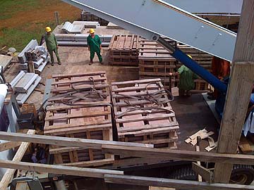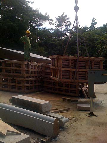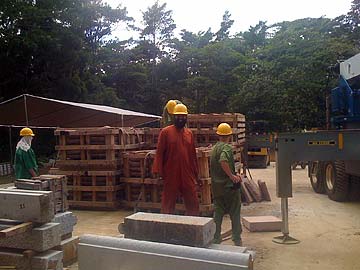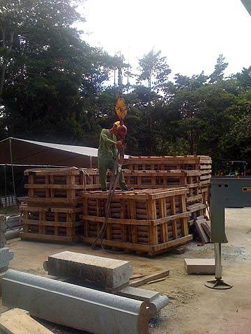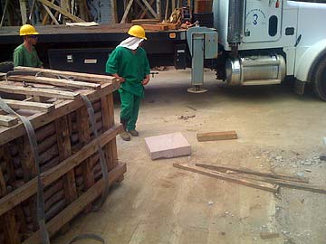 On Larrie's weight meter, some of these crates holding floor stones weigh in at over 6.5 tons!