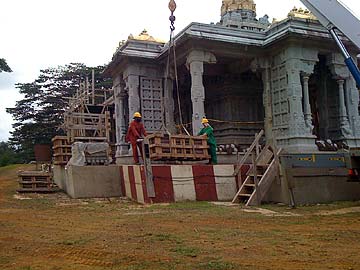 It was an historic day for another reason: the last roof beam of the Iraivan temple was raised up. It never happened before and will never happen again.