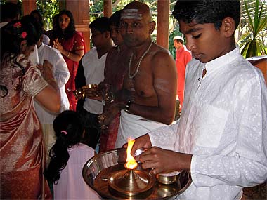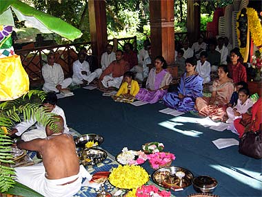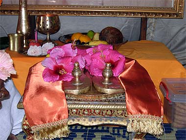 A cool morning and silence pervaded the Mandapam while the pada puja is being conducted.